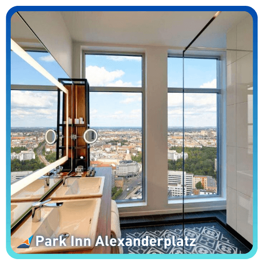 Σε ένα από τα πιο ψηλά κτίρια του Βερολίνου προσφέρει μοναδική πανοραμική θέα, με πάνω από 1.000 κομψά και σύγχρονα δωμάτια, απολαμβάνεις άνεση και στυλ, άνετα κρεβάτια, μεγάλες τζαμαρίες, δωρεάν Wi-Fi, μπάνια με πολυτελή αισθητική. Το ξενοδοχείο βρίσκεται κοντά στο Νησί των Μουσείων και απέχει μόλις 10 λεπτά με τα πόδια από την πλατεία Alexanderplatz και τα μοντέρνα καταστήματα και καφέ της Hackescher Markt. Επιπλέον όλο το 24ωρο μπορείτε να απολαύσετε σνακ από το μενού All Day Dining, εξασφαλίζοντας άνεση και λειτουργικότητα.