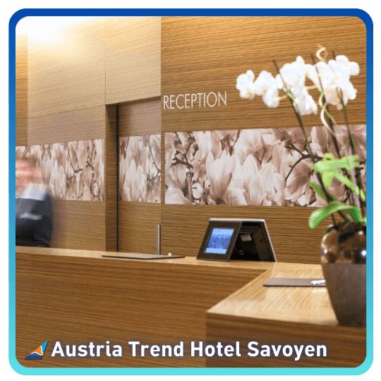 Το ξενοδοχείο Savoyen στεγάζεται σε ένα εντυπωσιακό κτίριο που άλλοτε φιλοξενούσε τα Αυτοκρατορικά Τυπογραφεία της Αυστρίας. Στο εσωτερικό του, η μοντέρνα αρχιτεκτονική, τα υψηλά επίπεδα άνεσης και οι σύγχρονες εγκαταστάσεις δημιουργούν μια μαγευτική ατμόσφαιρα φιλοξενίας. Η τοποθεσία του είναι ιδανική, μόλις 15 λεπτά με τα πόδια από το ιστορικό κέντρο της Βιέννης, προσφέροντας εύκολη πρόσβαση στα σημαντικότερα αξιοθέατα της πόλης. Το ξενοδοχείο διαθέτει 238 ευρύχωρα και άνετα δωμάτια 32–37 τ.μ., καθώς και ειδικά διαμορφωμένα δωμάτια για άτομα με αναπηρία (ΑμεΑ), με εύκολη πρόσβαση και όλες τις απαραίτητες ανέσεις. Το μπαρ Soissons, με τη χαλαρή τζαζ ατμόσφαιρα, αποτελεί τον ιδανικό χώρο για να απολαύσετε ένα κοκτέιλ ή μικρές γαστρονομικές απολαύσεις, ολοκληρώνοντας με τον πιο ευχάριστο τρόπο την ημέρα σας στη Βιέννη.