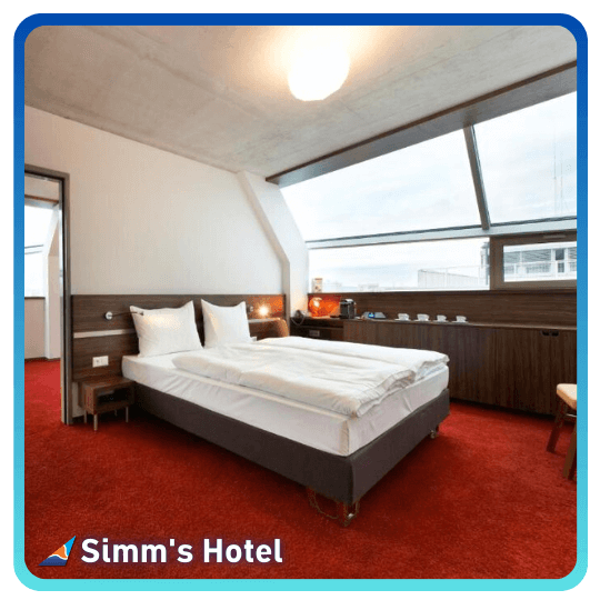 Ένας τέλειος συνδυασμός σύγχρονης αρχιτεκτονικής και λειτουργικότητας, προσφέροντας στους επισκέπτες μια μοναδική εμπειρία διαμονής. Το Simm's Hotel βρίσκεται σε απόσταση μόλις 6 χλμ. από το κέντρο της πόλης, δίπλα στη στάση του μετρό U3, διευκολύνοντας σημαντικά τη μετακίνηση σε όλα τα σημεία ενδιαφέροντος. Κάθε δωμάτιο είναι πλήρως εξοπλισμένο με τηλεόραση με δορυφορικά και καλωδιακά κανάλια, ενώ το μίνι μπαρ προσφέρει ποικιλία αναψυκτικών και σνακ, και έχει σχεδιαστεί ώστε να προσφέρει την ίδια εμπειρία “ζωντανής πόλης” ακόμα και στα δωμάτια, με θέα που σε κάνει να νιώθεις ότι η πόλη είναι δική σου.