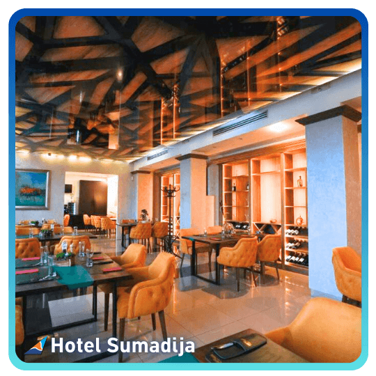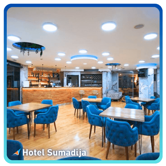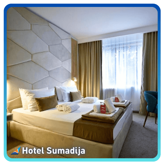 Η τοποθεσία του το καθιστά ιδανικό, μόλις 2 χλμ από το εκθεσιακό κέντρο της πόλης και τη ζώνη του Νέου Βελιγραδίου, προσφέροντας εύκολη πρόσβαση σε εμπορικά κέντρα και πολιτιστικά αξιοθέατα. Το Hotel Šumadija διαθέτει εστιατόριο υψηλής ποιότητας με προσαρμοσμένα μενού για γεύματα & δείπνα, επιτρέποντάς σας να απολαύσετε εξαιρετικό φαγητό χωρίς να χρειαστεί να απομακρυνθείτε. Στις εγκαταστάσεις του θα βρείτε επίσης μοντέρνο γυμναστήριο, χώρο χαλάρωσης και lounge για στιγμές ξεκούρασης. Τα δωμάτια είναι σχεδιασμένα για άνεση και πολυτέλεια, διαθέτουν δωρεάν Wi‑Fi, επίπεδη τηλεόραση με διεθνή κανάλια, μίνι ψυγείο/μίνι μπαρ, ηχομονωμένα παράθυρα για ήσυχο ύπνο και προσεγμένα προϊόντα περιποίησης, εξασφαλίζοντας μια ολοκληρωμένη εμπειρία διαμονής.
