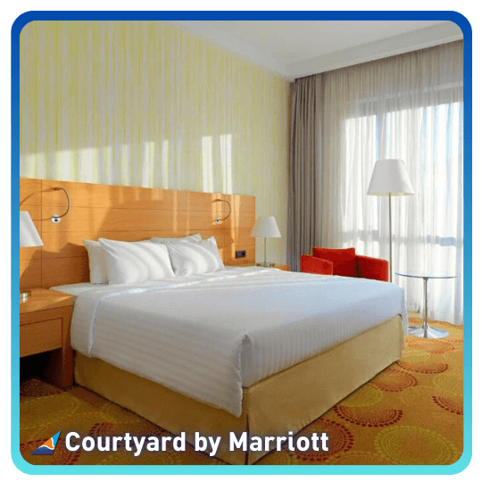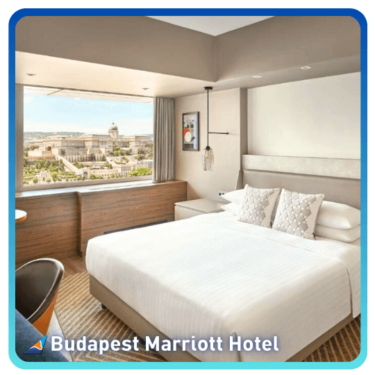 Ένα πολυτελές ξενοδοχείο που βρίσκεται ακριβώς στον κύριο περιφερειακό δρόμο Ringstraße και είναι το μοναδικό ξενοδοχείο που προσφέρει μια απίστευτη θέα από τα 364 δωμάτια προς τον ποταμό Δούναβη. Τα δωμάτια προσφέρουν έναν εξαιρετικό συνδυασμό στυλ, καινοτομίας και άνεσης, καθώς διαθέτουν τηλέφωνο, τηλεόραση, καφετέρια στον χώρο, καθιστικό, επιφάνεια εργασίας και δωρεάν Wi‑Fi. Το Marriott Hotel παρέχει ένα εστιατόριο που λειτουργεί όλη την ημέρα, με μια συναρπαστική ανοιχτή κουζίνα και έναν πάγκο ντελικατέσεν, που προσφέρει τα καλύτερα προϊόντα της Ουγγαρίας.