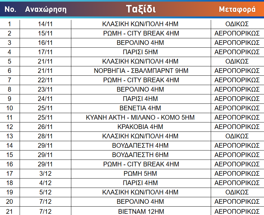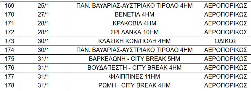 178 Εγγυημένες αναχωρήσεις Νοέμβριος - Ιανουάριος