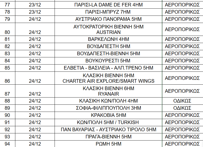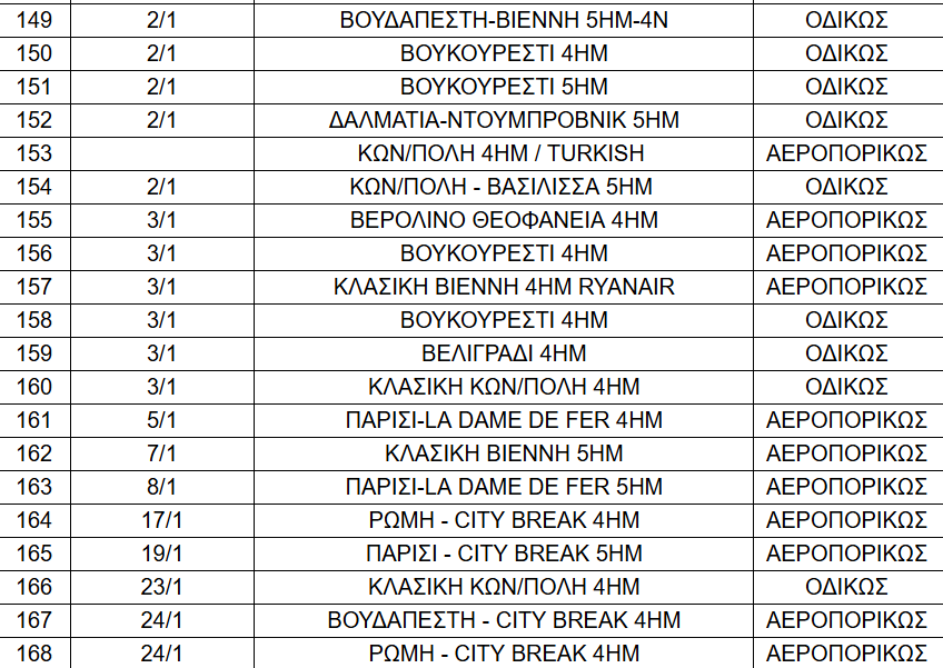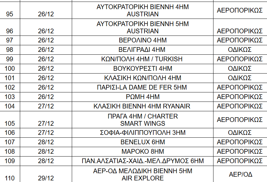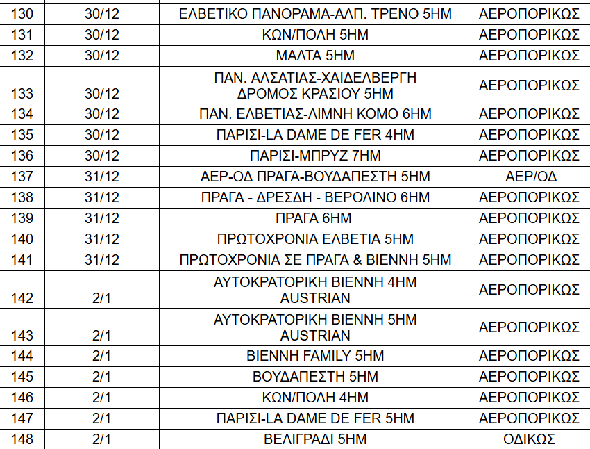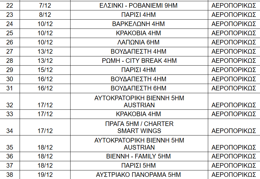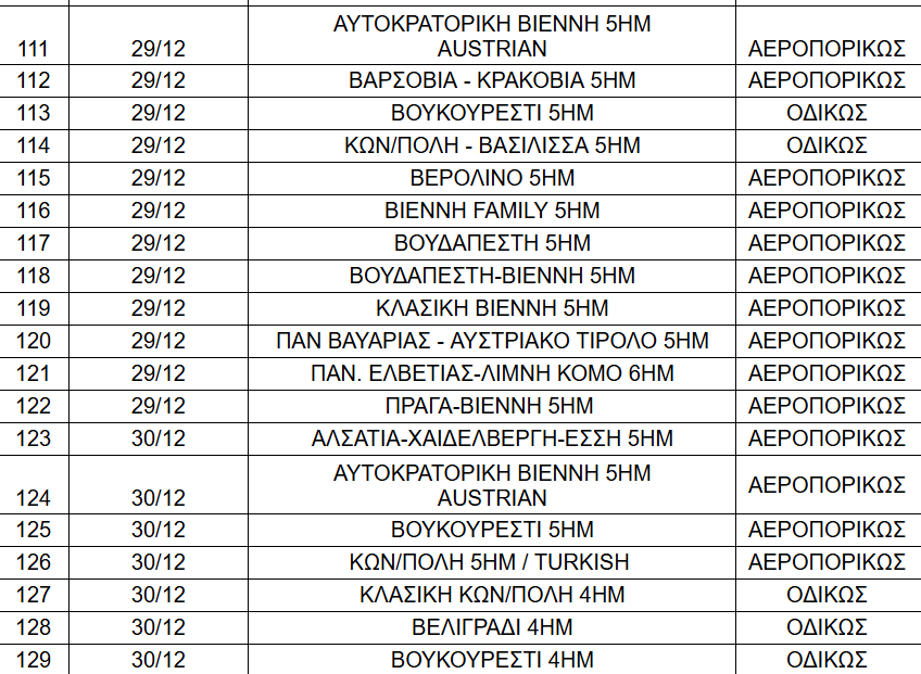 Αναλυτικά οι εγγυημένες αναχωρήσεις: