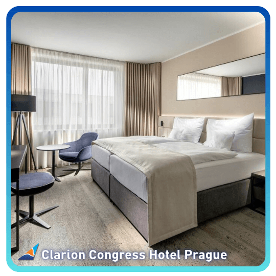 Στην Πράγα η διαμονή σας γίνεται μια ολοκληρωμένη εμπειρία πολυτέλειας και άνεσης, σε στρατηγική τοποθεσία κοντά στο κέντρο της πόλης. Μόλις λίγα λεπτά μακριά βρίσκονται τα πιο διάσημα αξιοθέατα, όπως η Πλατεία της Παλιάς Πόλης, το Κάστρο της Πράγας και η Γέφυρα του Καρόλου, καθιστώντας το ιδανικό σημείο εκκίνησης για να εξερευνήσετε την πόλη. Το ξενοδοχείο προσφέρει πλήρη γκάμα παροχών, συμπεριλαμβανομένου σύγχρονου γυμναστηρίου, σάουνας, εστιατορίου με διεθνή κουζίνα και lounge bar, ώστε να καλύπτει κάθε ανάγκη των επισκεπτών. Τα δωμάτια του Clarion Congress είναι μοντέρνα και άνετα, με δωρεάν Wi‑Fi, επίπεδη τηλεόραση, minibar, χρηματοκιβώτιο και κομψή επίπλωση, δημιουργώντας ένα ιδανικό περιβάλλον χαλάρωσης μετά από μια γεμάτη μέρα.