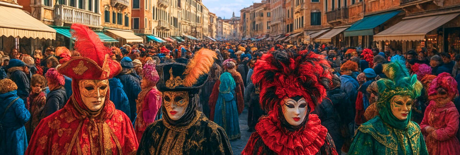 Ετοιμαστείτε να ζήσετε την πιο μαγευτική εμπειρία, ένα ταξίδι στη Βενετία κατά τη διάρκεια του διάσημου Καρναβαλιού! Η Βενετία, χτισμένη πάνω σε 119 μαγευτικά νησιά, ενωμένα με γέφυρες και διασχισμένα από γραφικά κανάλια, προσφέρει ένα τοπίο που μοιάζει βγαλμένο από παραμύθι. Ανάμεσα στους αρλεκίνους, τους μαρκήσιους και τους γοητευτικούς καζανόβες, θα ανακαλύψουμε τη μαγεία του διασημότερου καρναβαλιού της Ευρώπης. Με στολές που θυμίζουν άλλες εποχές, οι μασκαράδες γεμίζουν τους δρόμους και τις πλατείες, ανταγωνιζόμενοι ο ένας τον άλλο με την κομψότητα και τη φαντασία τους, ενώ το φως της ημέρας παραχωρεί τη θέση του στη λάμψη των βενετσιάνικων φαναριών.